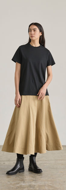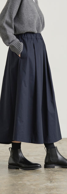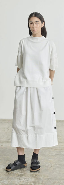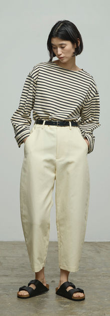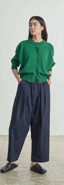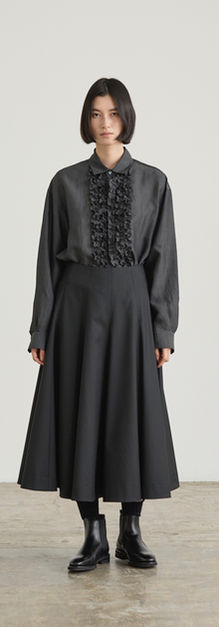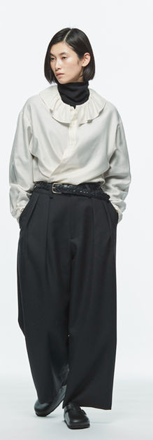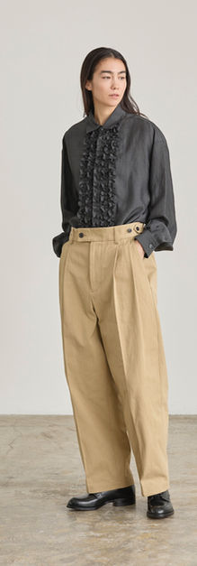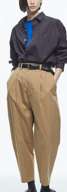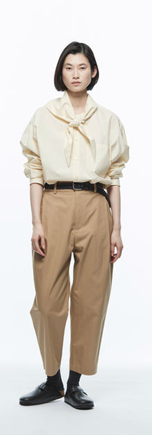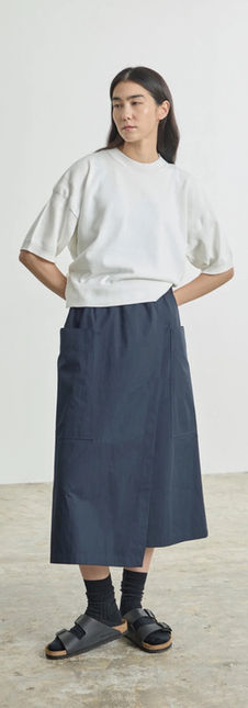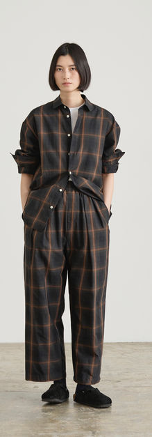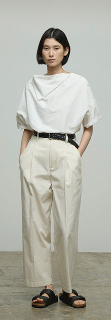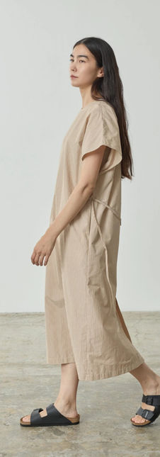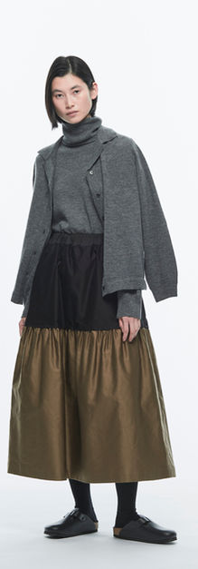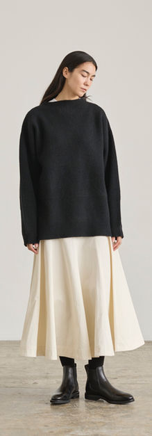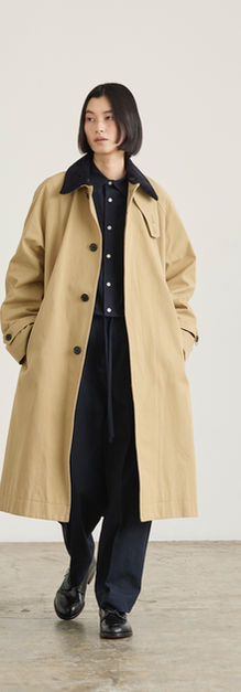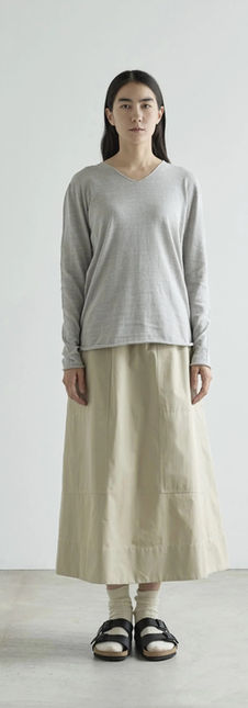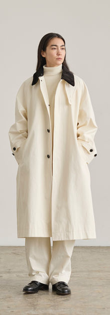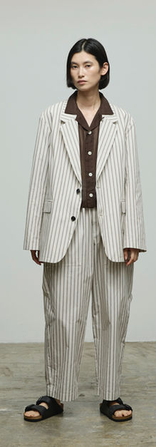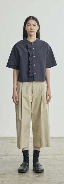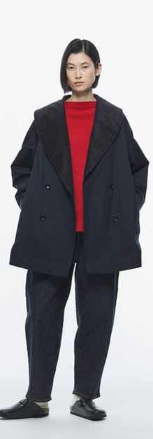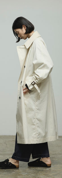 The brand is known for its structured yet, easy lines with flattering, oversized silhouettes and tailored outerwear. Designed and sewn by experienced seamstresses and tailors in Osaka, Japan.