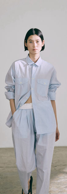 Nicholson & Nicholson is a Japanese womenswear brand rooted in classic menswear tailoring and thoughtful craftsmanship. Founded by husband-and-wife team Yusuke and Yuka Nakagawa, the label carries the history of Yusuke’s family shop, NAKAGAWA1948, where the name first appeared on an original shirt.